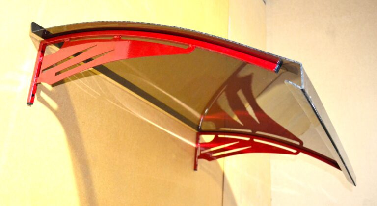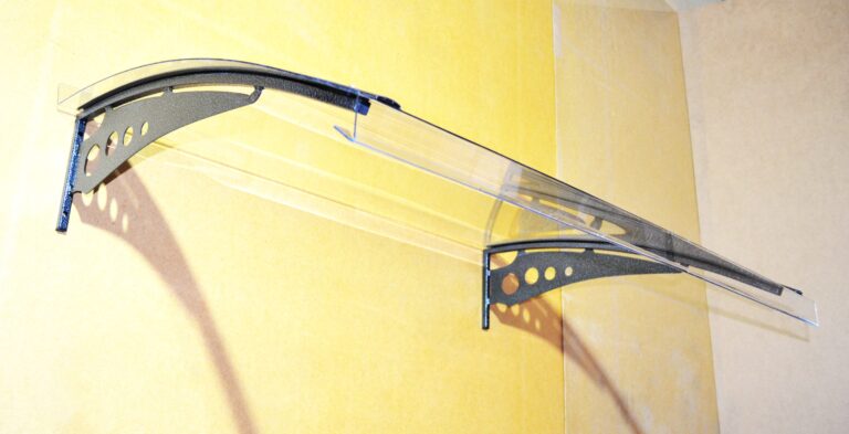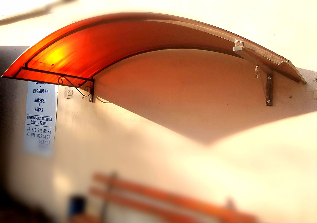 В наших козырьках пристенная, примыкающая к стене и передняя лобовая для стока воды планки выполнены методом термоформовки,что значительно увеличивают прочность козырька при уменьшении дополнительных металлических элементов,придает законченный эстетичный вид.