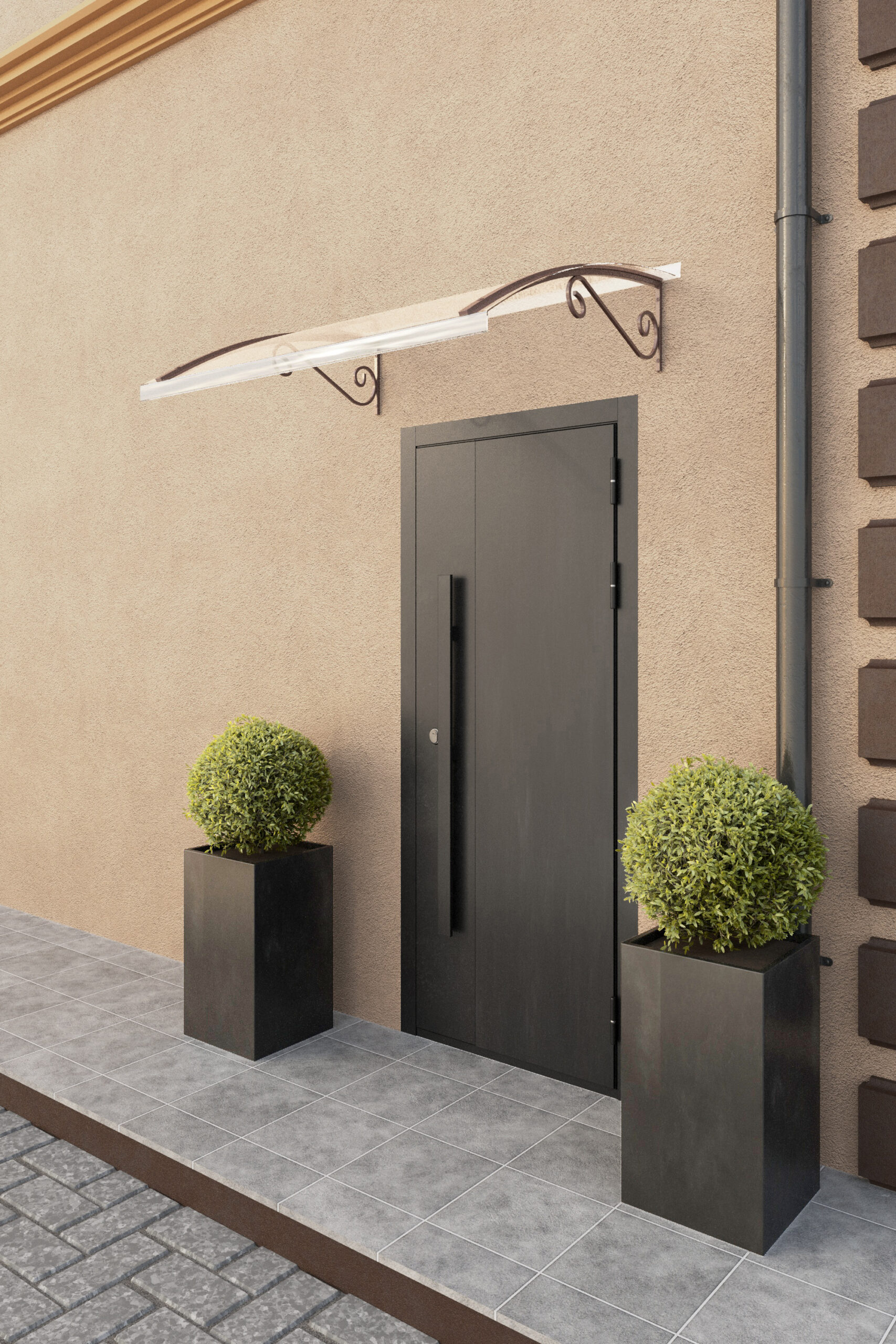 Набор козырька «Сделай сам» ТМ Анкор Крым состоит из 2-х кронштейнов с прижимным алюминиевым профилем, окрашенных порошковой эмалью и заготовки из монолитного поликарбоната с отогнутыми методом термогибки задней пристенной и передней лобовой кромками. Покупка готового комплекта выгодна, потому что сокращает затраты Ваших времени, сил и ресурсов. Кронштейны выпускаются в двух цветах — коричневый и антик медь. Заготовки у монолитного поликарбоната выпускаются в 5-ти типоразмерах и двух цветах- прозрачный и бронзовый. Видео-инструкцию по сборке козырька Вы можете посмотреть здесь